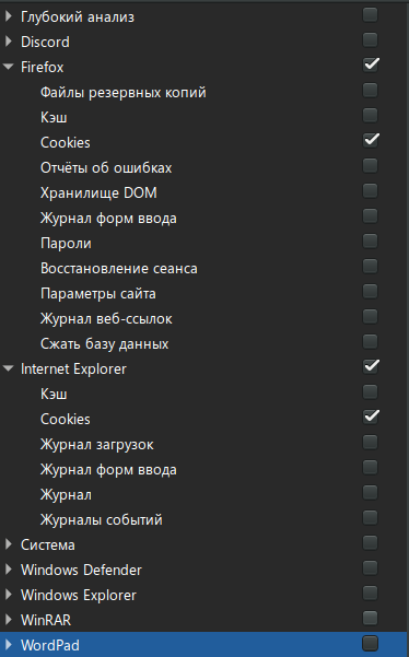 Запускайте ее и убирайте все галочки с чекбоксов, кроме Cookies на всех вкладках браузеров.