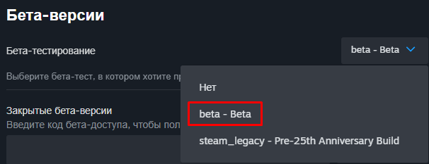 🔵✔️ 4. Включить бета тестирование для кс 1.6